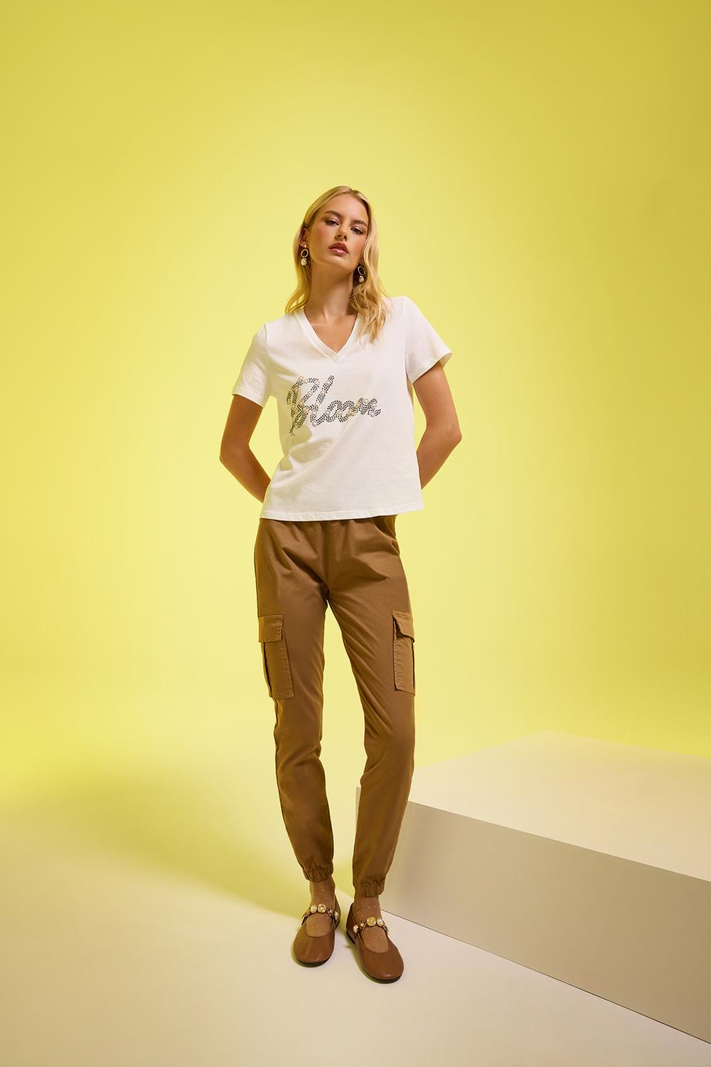 Leggings moda modello cargo con cotone leggero. Senza zip. Cinturino elasticizzato con passanti. Polso sul fondo gamba arricciato.