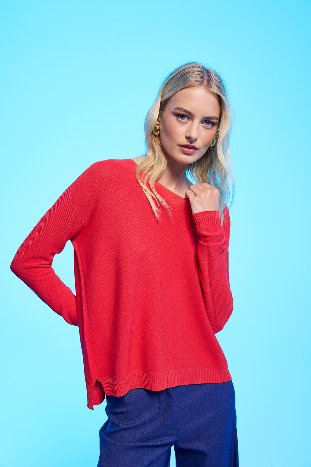 Fashion viscose sweater. V-neck. Long sleeve.